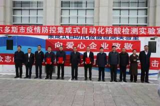 11月5日,“鄂尔多斯市疫情防控集成式自动化核酸检测实验室捐赠仪式”在市卫生健康大厦举行。鄂尔多斯市副市长王心宇,市卫健委党组书记、主任王枫,市红十字会党组书记、常务副会长白同,以及爱心捐赠企业代表出席了活动。