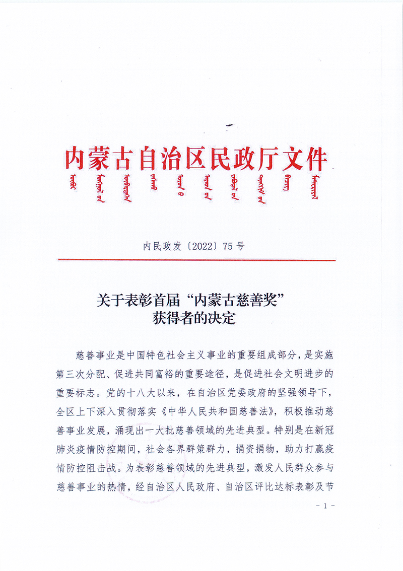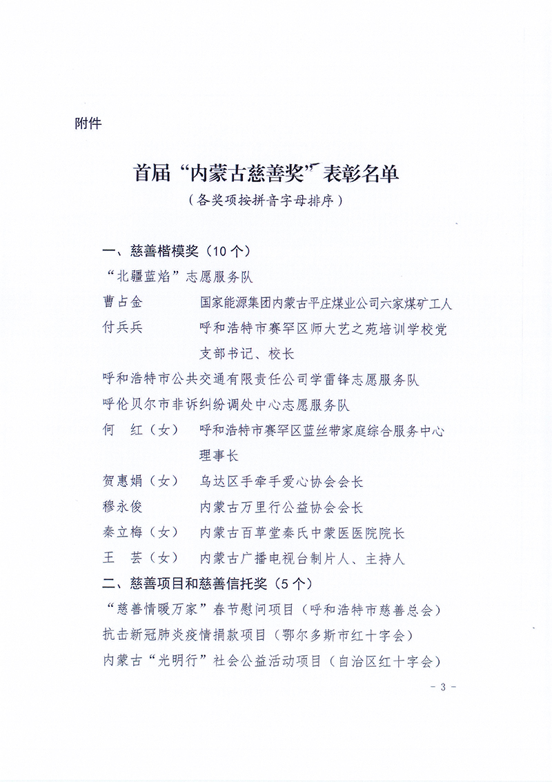 关于表彰首届“内蒙古慈善奖”获得者的决定