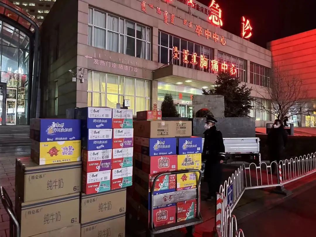 鄂尔多斯市汇能集团了解到市中心医院的医务人员工作压力大,休息时间短,无法按时吃到饭,下夜班也都奋战在抗疫一线到深夜,紧急采购了大量的“暖心简餐”,2022年12月30日连夜派送给医院东康两部一线医务人员,实力助力疫情防控工作。